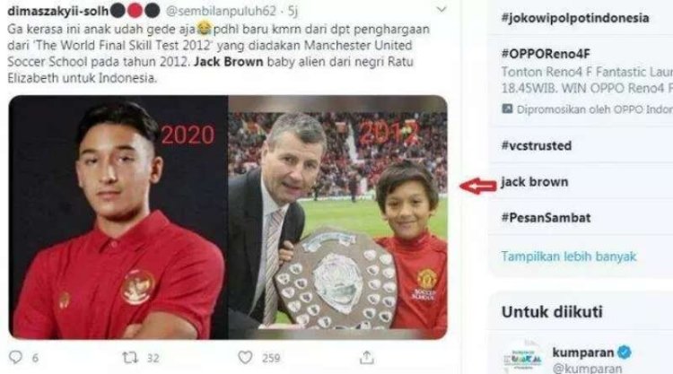 “Untuk Jack brown jangan pernah punya cita cita main di liga Indonesia yaa tapi main lah untuk timnas Indonesia sayng bakat mu bro,” – @ditiadakansaja