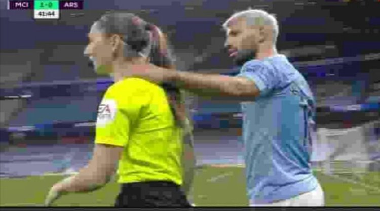 Bukan karena skill atau gol, tetapi Aguero disorot karena sikapnya terhadap salah satu ofisial pertandingan.