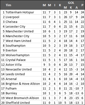 Sama-sama mengoleksi 24 poin, Tottenham berada di atas Liverpool setelah unggul selisih gol surplus 14 dibandingkan sembilan milik The Reds.