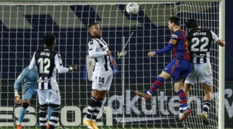 Griezmann punya peluang bagus ketika dia berdiri bebas menerima umpan silang Messi dan menendang bola dengan keras. Bola yang meluncur di antara pemain Levante yang menumpuk berhasil ditepis kiper Aitor.