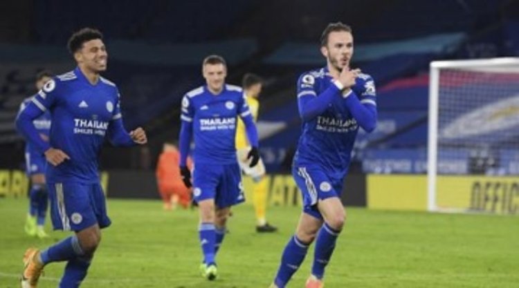 Leicester City menang 3-0 atas Brighton yang membuat mereka menempel ketat Tottenham Hotspur dan Liverpool di klasemen./ap/michael regan/via cnn indnesia.