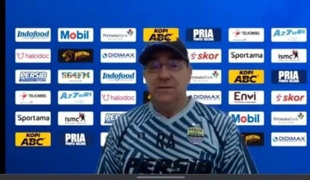 Pelatih Persib Bandung, Robert Rene Alberts dalam wawancara daring./tangkapan layar/via republika.co.id/ist