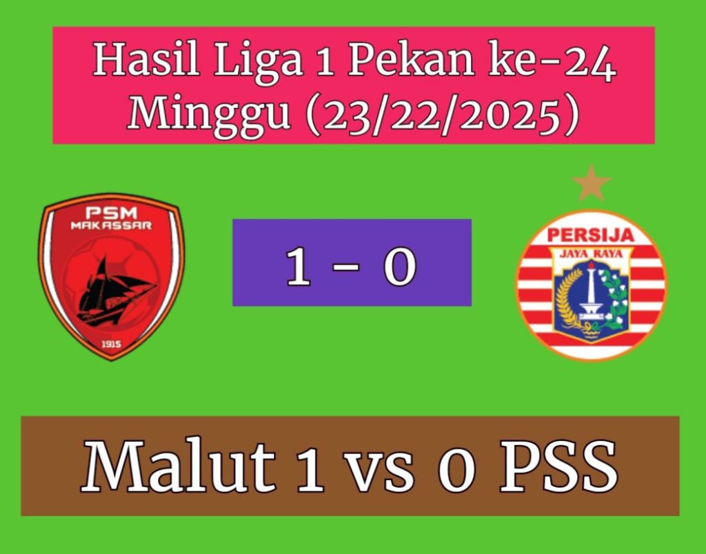 Hasilnya Persija tumbang dikalahkan PSM, sedangkan Malut United sukses mengalahkan PSS Sleman.