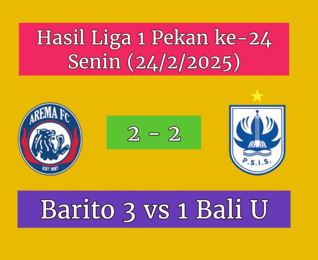 Hasil Liga 1 pekan ke-24 hari keempat, Senin 24 Februari 2025. (kolase/bolayes.news)