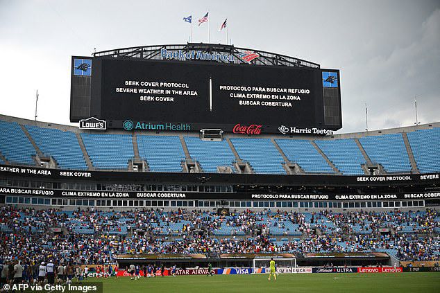 Pertandingan itu sendiri dihentikan cukup lama, dua jam, karena petir menyambar di dekat Stadion Bank of America di Charlotte.